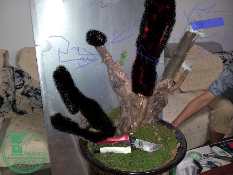 请查看本盆景造型构思设版块〖123456789〗版主为你这个桩构思设计画图啦,请查看帖子【2016------第16张设计图 】